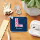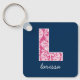 Navy and Hot Pink Damask Pattern Monogram Letter L Keychain