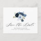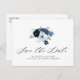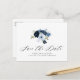 watercolor navy and light blue flowers with black script. You can edit the text and colors.