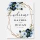 A geometric design with painted navy and light blue watercolor flowers The text and colors on this wedding sign poster can be edited.