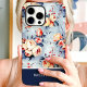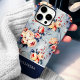 This sophisticated phone case features a striking design of peach roses and delicate floral accents set against a muted blue background. The modern floral arrangement is enhanced by a bold navy band at the bottom, showcasing a customizable name for a unique and stylish touch. Perfect for those who appreciate feminine and contemporary designs, this case is ideal for daily use or as a thoughtful gift.