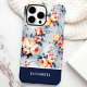 Navy and Peach Custom Name Floral Case-Mate iPhone Case