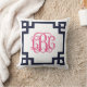 Navy and Pink Greek Key Script Monogram LBC Throw Pillow