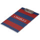 Stay organized in style with our rugby stripe pattern clip board. Featuring a classic navy blue and red design, this clipboard adds a touch of sporty sophistication to your daily tasks. The customizable name in the center allows you to personalize it and make it truly yours. Whether you're taking notes in the office, at school, or on the go, this sturdy and eye-catching clipboard will keep your papers secure and showcase your unique flair.