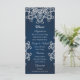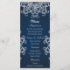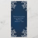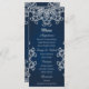 A beautiful dark blue navy sapphire JEWEL TONED and silver look wedding menu card with an exotic Indian inspired ornamental sari MEDALLION pattern WITH A FLORAL AND LOTUS SUNBURST DESIGN. This elegant and beautiful modern Indian style wedding invite is perfect for any formal occasion WITH AN EAST ASIAN INDONESIAN MOROCCAN ALADDIN OR ARABIAN NIGHTS THEME. Designed by Chrissy H. Studios, LLC. All Rights Reserved.