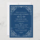 Navy and Silver Ornate Scroll Wedding Invitation