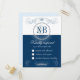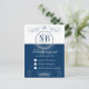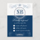 Navy and silver RSVP postcards with rhinestones and calligraphic decorations and monograms. You can personalize every field, you can delete the divider dots on the back if you don't need them. These RSVP postcards are part of my full Blue and Silver wedding set.