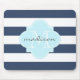 Navy and Sky Blue Nautical Stripes Custom Monogram Mouse Pad