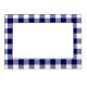 Dark blue, white, and light blue squares form a bold, buffalo plaid. The navy and white gingham pattern reminds me of classic decor.