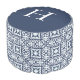 This Mediterranean style pouf in classic blue and white makes a beautiful addition to your beach house, bedroom, dorm room or apartment! Intricately patterned geometric design in navy blue, sky blue and white takes its cue from the traditional azulejo tiles of Spain and Portugal. Personalize with a single initial monogram in white on the solid color top.