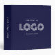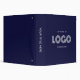 Create your own navy and white or colorful business logo image on a customizable background colored three ring binder.