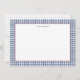 Simple nautical Personalized navy blue and white petite check flat thank you note card. Shown in 5X7 card