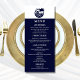 Bring a touch of seaside elegance to your special day with this personalized coastal wedding menu card, featuring a chic graphic design of a navy blue palm tree, the sun rising above the ocean, and peaceful birds in flight—all beautifully framed within a navy circle. Set against a stylish crisp white and navy background, this palm tree wedding design captures the serene beauty of the sea and the relaxed charm of a tropical celebration. With elegant typography and calligraphy script fonts, this stylish beach wedding menu is perfect for summer ceremonies and coastal receptions. A timeless addition to your wedding menus collection.