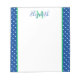 This preppy notepad features classic navy blue and white polka dots and a green border with a monogram you can personalize in matching navy and green.