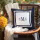 Navy and White Preppy Ribbon Dots Custom Monogram Throw Pillow
