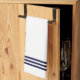 This simple, elegant kitchen towel will add a personalized touch of style to your kitchen! Navy blue stripes and your initial in modern script appear on a white background.