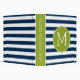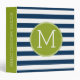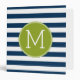 Navy and White Striped Pattern Green Monogram Binder