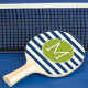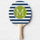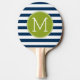 Navy and White Striped Pattern Green Monogram Ping-Pong Paddle