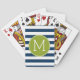 Navy and White Striped Pattern Green Monogram Poker Cards