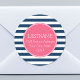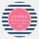 Navy and White Striped Pattern Hot Pink Monogram Classic Round Sticker