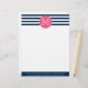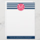 Navy and White Striped Pattern Hot Pink Monogram Letterhead