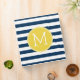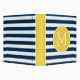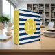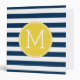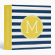 Navy and White Striped Pattern Yellow Monogram 3 Ring Binder