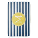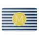 Navy and White Striped Pattern Yellow Monogram Bathroom Mat