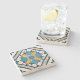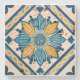 Inspired by the traditional Azulejo tiles of Spain and Portugal, this bar top or table top stone coaster features an intricate geometric pattern in breezy navy blue and sunny golden yellow
