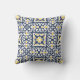 Navy and Yellow Mediterranean Tile Pattern Throw Pillow
