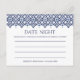 A spanish tile border in stunning shades of navy blue adorns these cards. Use these elegant cards at your bridal shower party for the guests to share their favorite date night ideas for the newly couple. Use the template to add the bride's name and date of shower, and the future bride and groom' names.