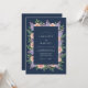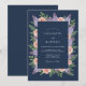 Delicate blossoms in shades of lilac and peach are artfully arranged with lush greenery. This design evokes a romantic and ethereal atmosphere, perfect for a sophisticated celebration. The deep navy backdrop complements the floral elements, creating a striking visual.