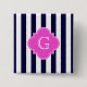 Navy Blu White Stripe Hot Pink Quatrefoil Monogram Button