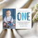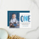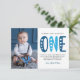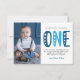 Modern, simple and elegant boy first birthday thank you card. Design featuring trendy script one , thank you message and a photo.