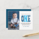 Modern, simple and elegant boy first birthday thank you postcard. Design featuring brushed script one , thank you message and a photo.