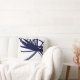 Navy Blue Abstract Ribbon Design on White Throw Pillow