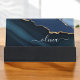 Navy Blue Agate Geode Gold Monogram Desk Business Card Holder