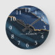 Navy Blue Agate Geode Gold Monogram Large Clock