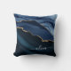 Navy Blue Agate Geode Gold Monogram Throw Pillow