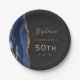 Navy Blue Agate Marble Gold Dark 50th Birthday Paper Plates
