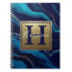 Navy Blue Agate Marble Gold Name and Monogram Notebook