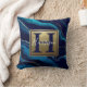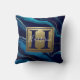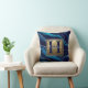 Navy Blue Agate Marble Gold Name and Monogram Throw Pillow