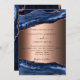 Navy blue agate marble rose gold evening wedding invitation