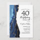 Navy Blue Agate White Gold 40th Birthday Invitation