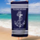 Navy Blue Anchor and Stripes Custom Name or Text Beach Towel
