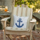 Navy Blue Anchor Light Grey Stripes Outdoor Pillow
