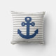 A simple shape of a navy blue anchor against a light grey and white stripe pattern. You can change the light grey background color if you want to try other nautical colors on this pillow. Delete the stripes seamless tile image if you would prefer a solid color background. Keep the outdoor fabric and bring this pillow on the sailboat with you, or choose another fabric option for home decor. You can customize the image and add a personalized text message for a couple, or rotate the anchor clip art vector image to a 45 degree angle. You can use the 00255E navy blue color in the system if you'd like to match a text design to the anchor.