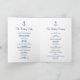 Nautical bi-fold wedding program with navy blue anchor and mint green stripes. Perfect for elegant summer destination weddings and coastal events.