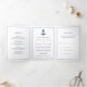 Navy Blue Anchor Monogram Nautical Elegant Wedding Tri-Fold Invitation