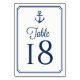 Navy Blue Anchor Nautical Table Numbers Card