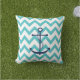 Navy Blue Anchor with Aqua Chevron Pattern Outdoor Pillow