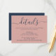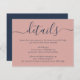 Provide your guests with important details with this elegant modern navy blue and blush wedding enclosure card featuring a modern script font. Matching items available. Custom requests welcome.